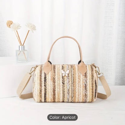 Fashionable New Rainbow Woven Women'S Vacation Versatile Boston Bag, Casual Shoulder Crossbody Bag.