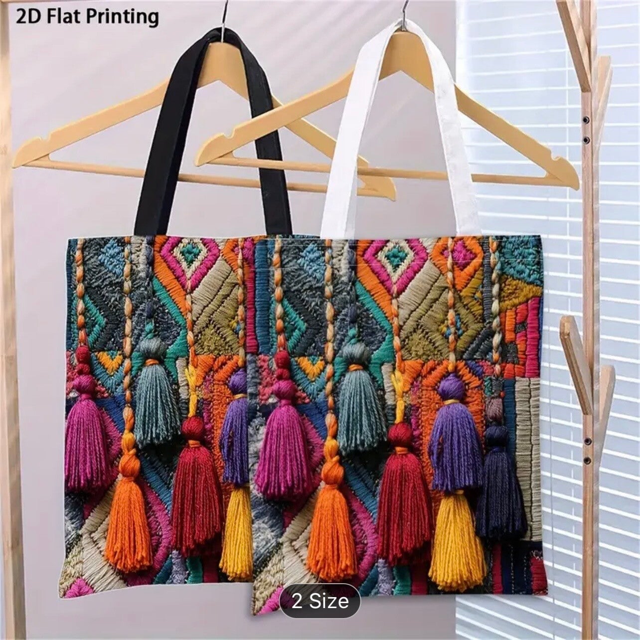 Large Capacity Reusable Tote Bag with a Colorful Boho Print, Perfect for Grocery Shopping. Features Sturdy Handles.